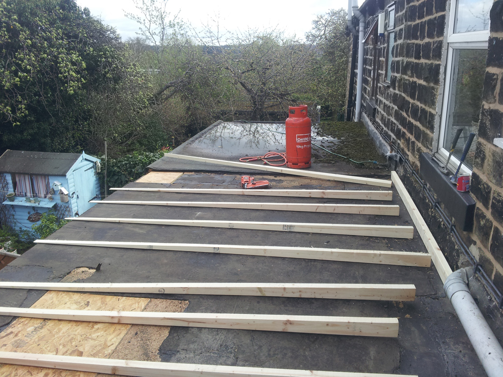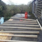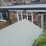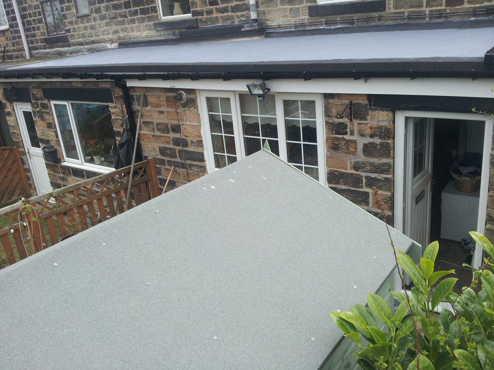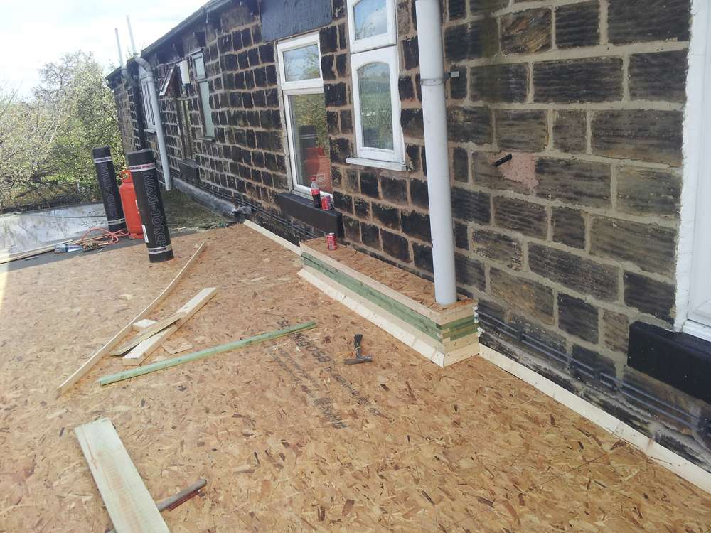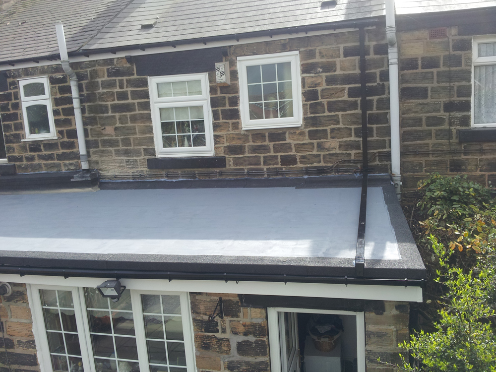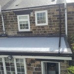 Shows completion of 2 neighbouring flat roofs yet still maintaining a watertight joint to end neighbouring roof (the end neighbour did not wish to go ahead with a replacement roof), but was highly delighted with our professionalism in joining into existing.