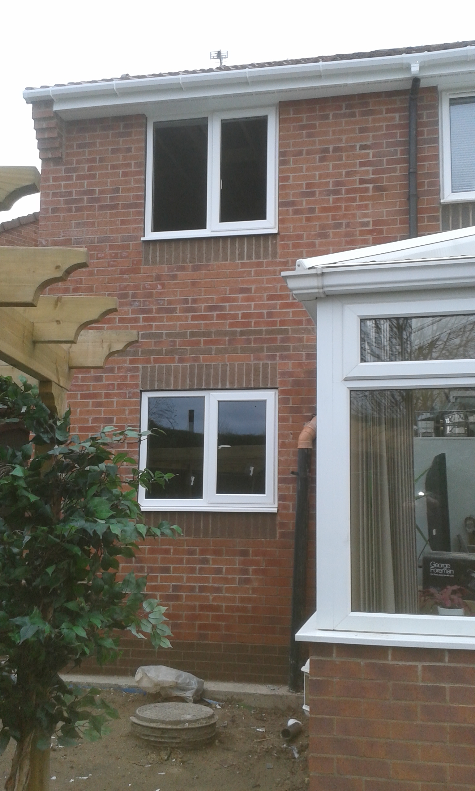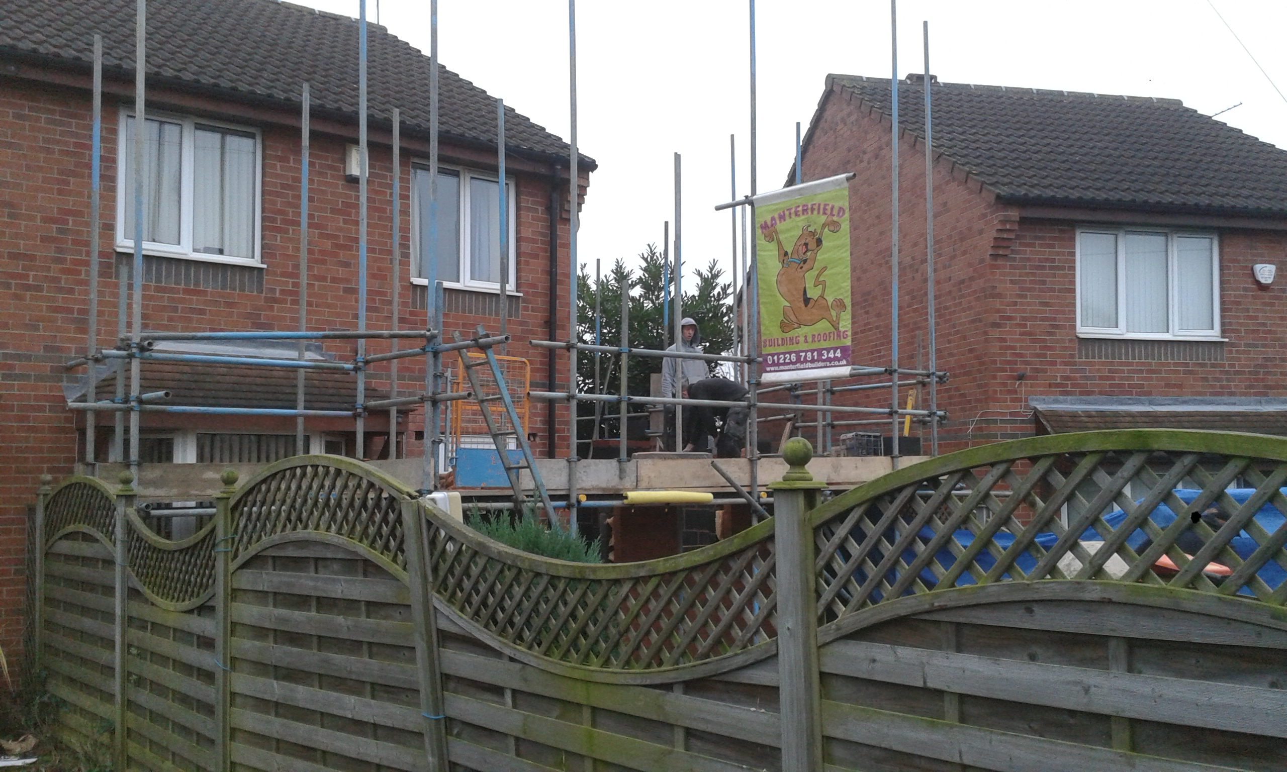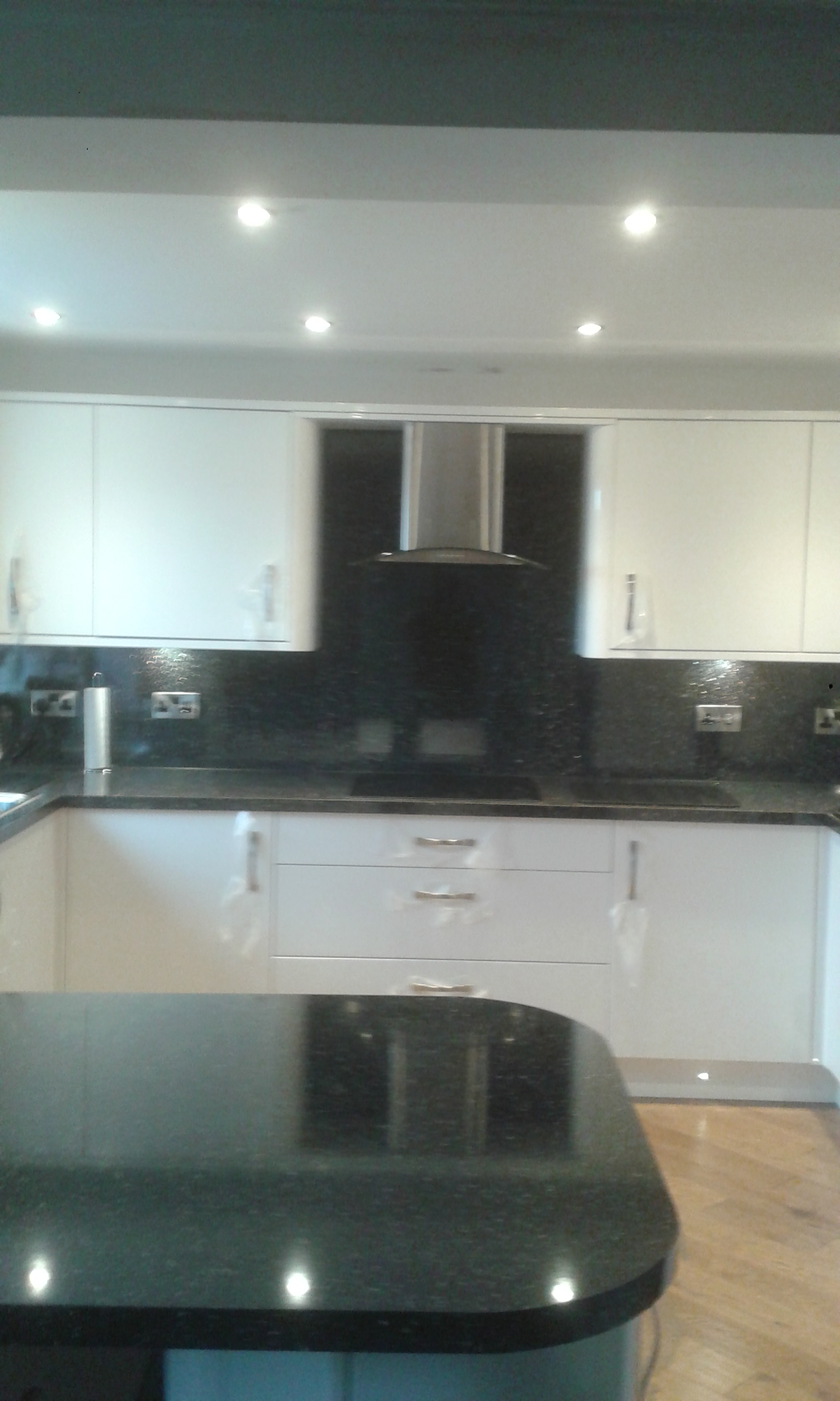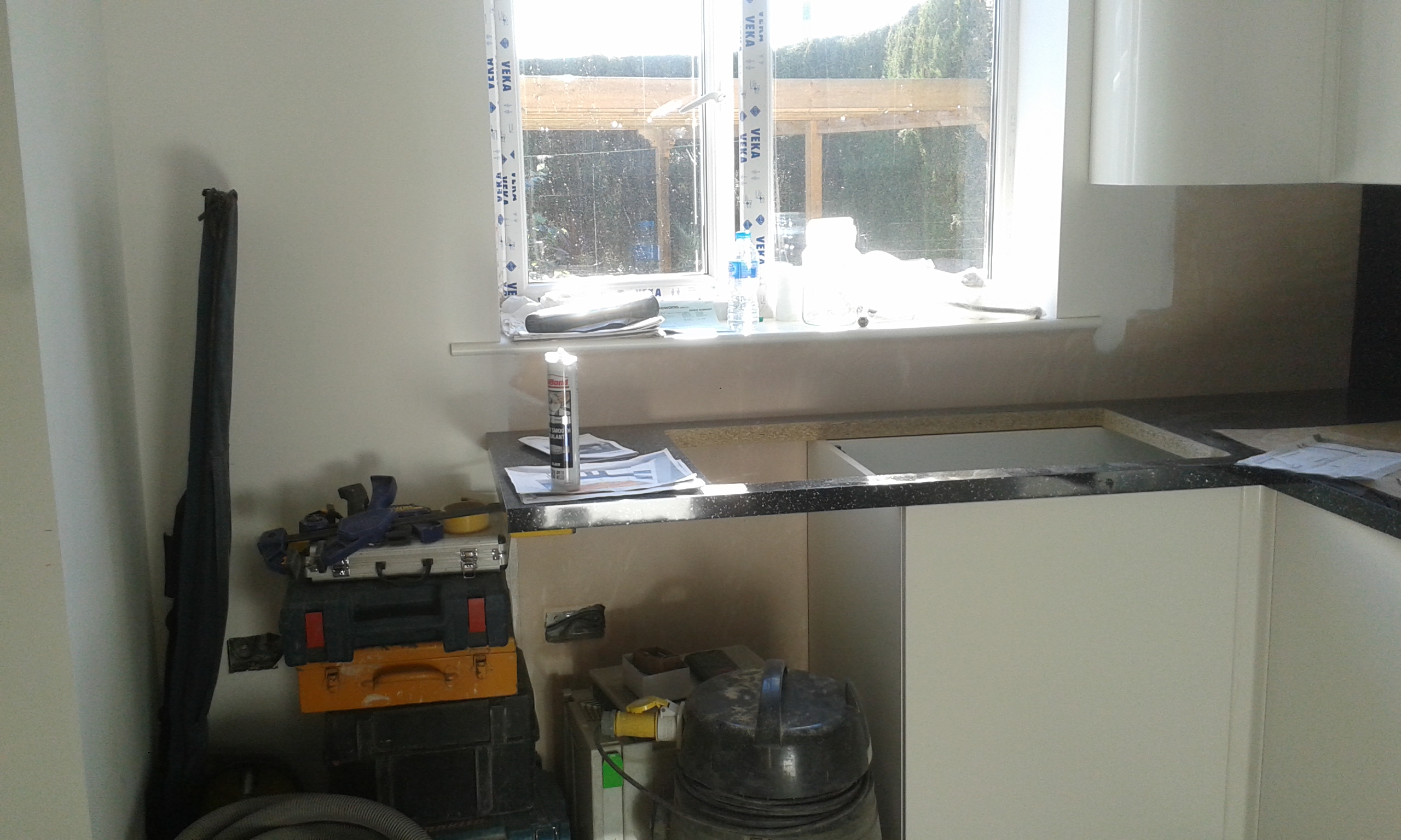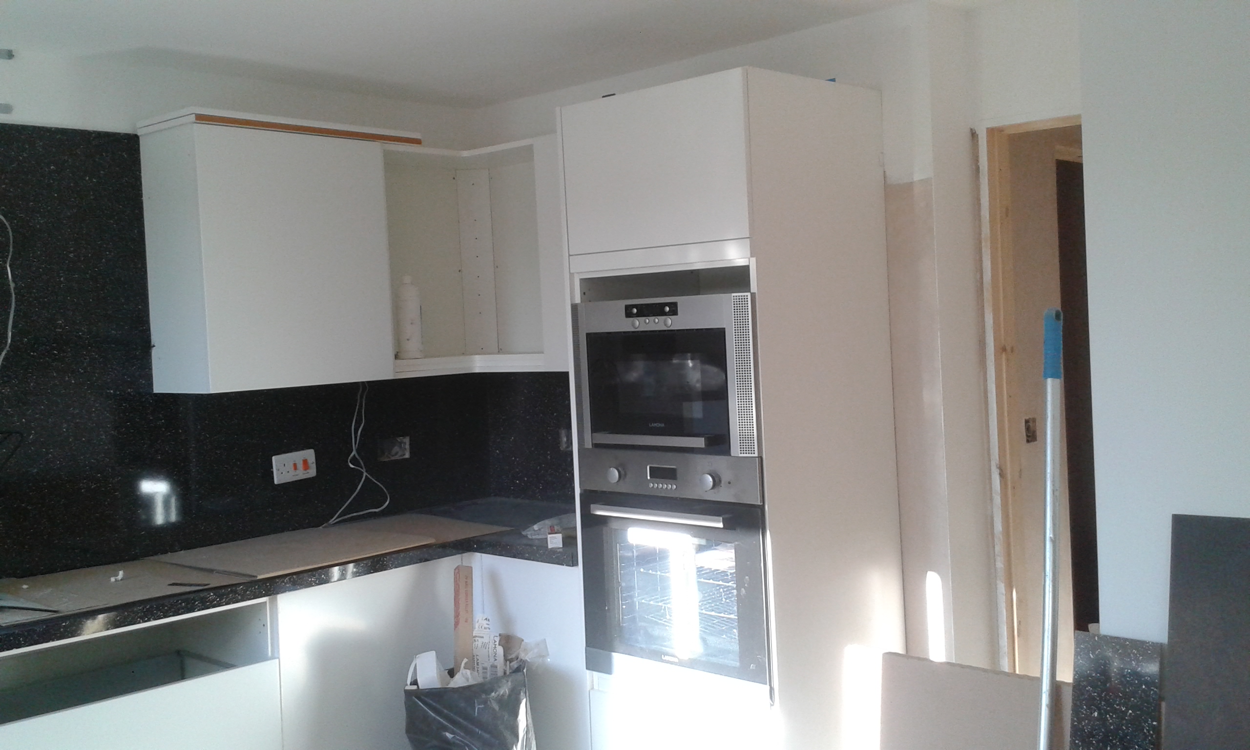 Constructed Side and Front Double Storey Extension, creating large kitchen area with modern units and appliances.