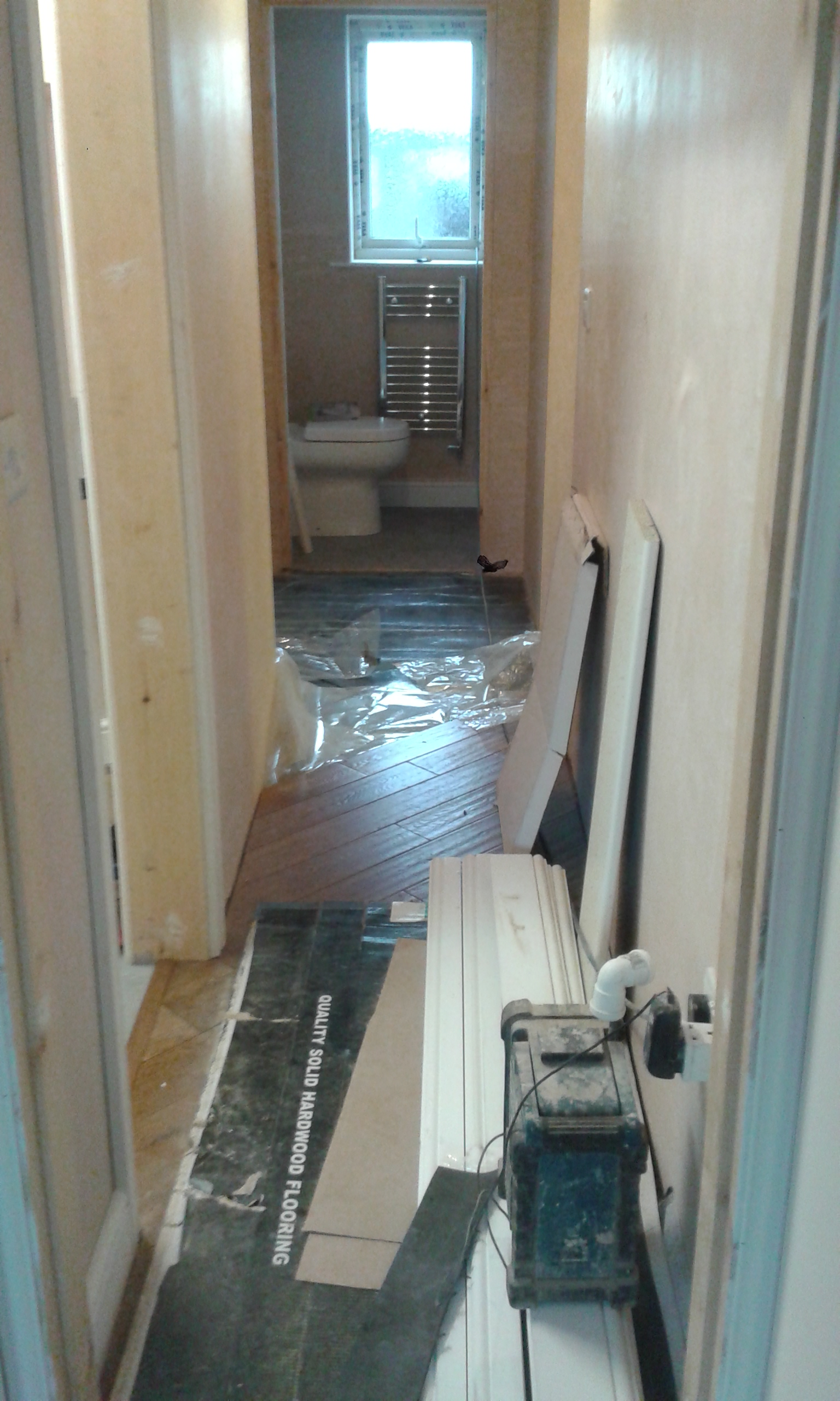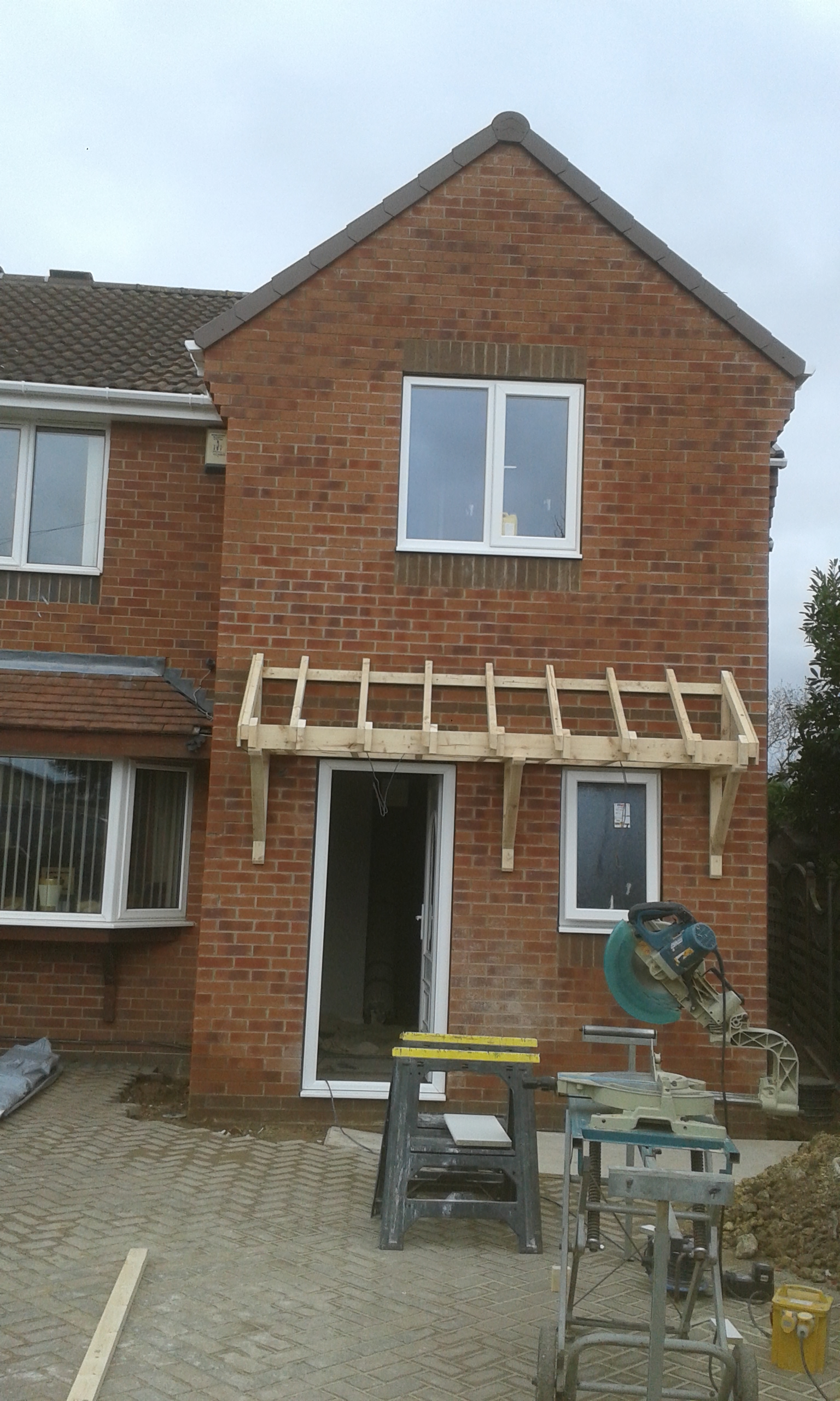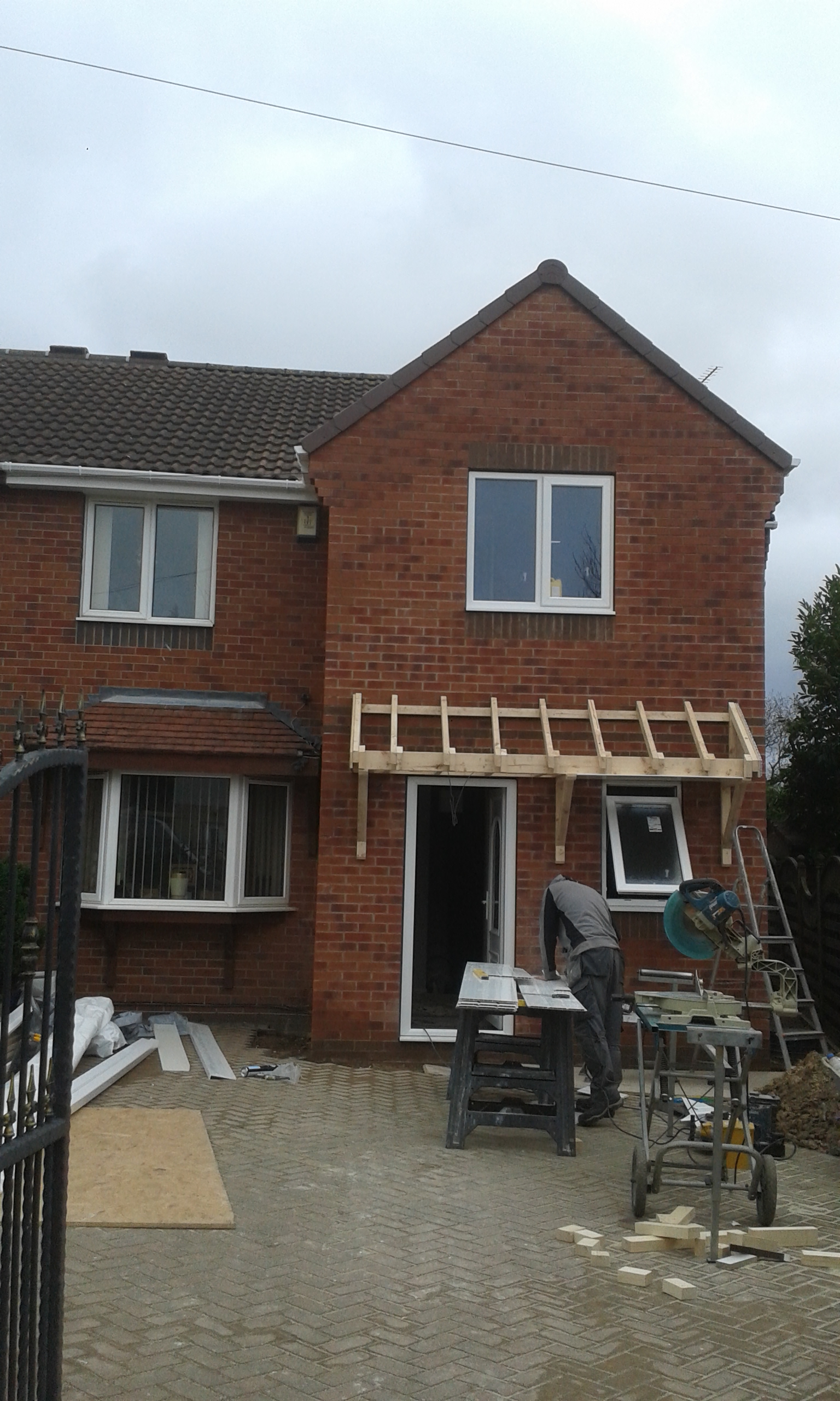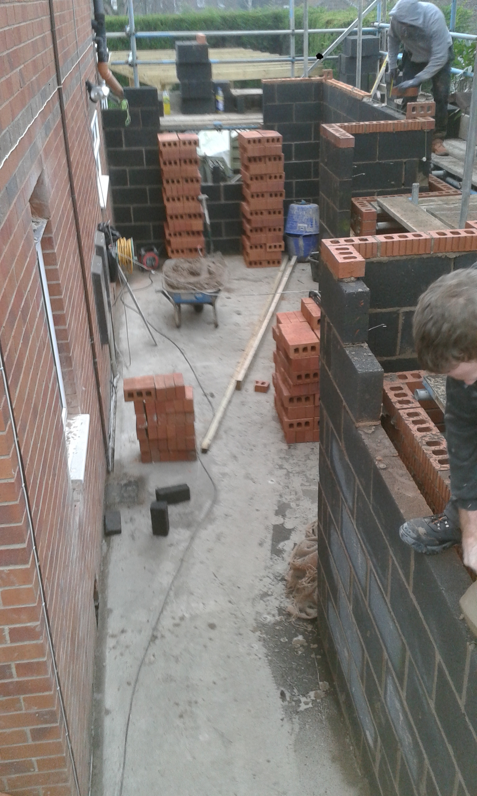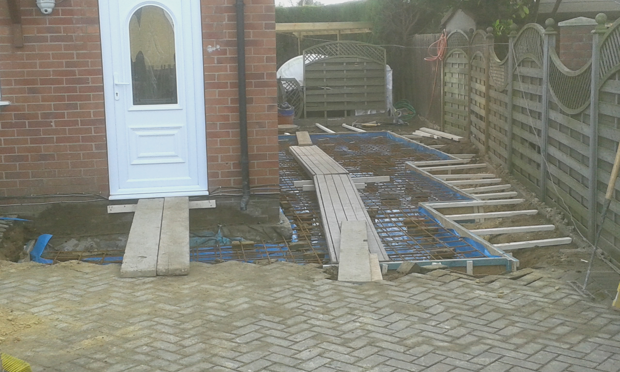 Constructed Side and Front Double Storey Extension, creating large kitchen area with modern units and appliances.