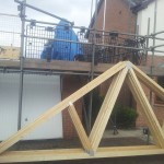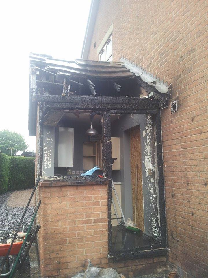 Included re-building gable wall and installing 2 new automatic garage doors.