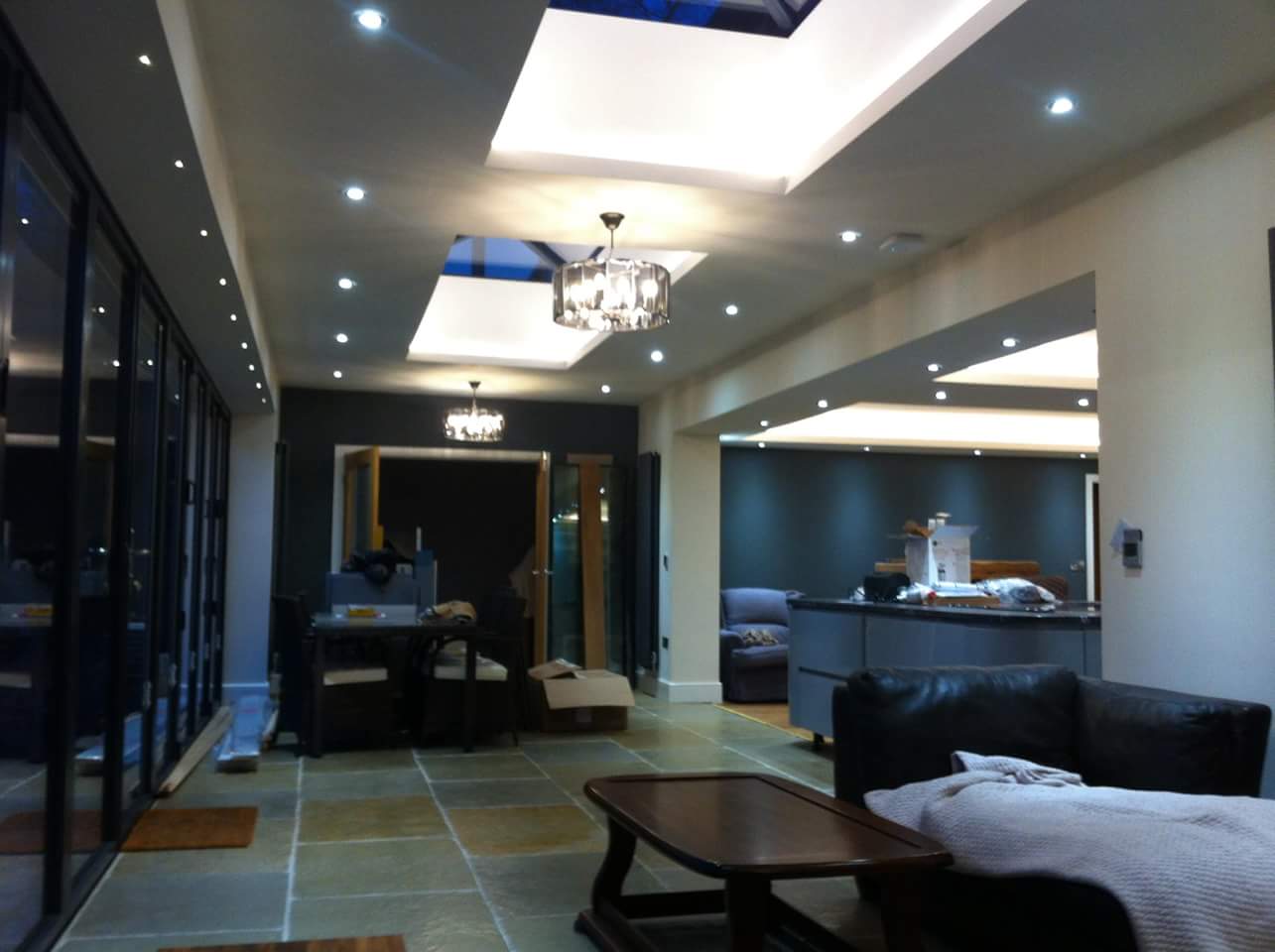 We carried out Orangery and extensive alterations to create a vast bespoke living space, we worked with the Customer to achieve a finished masterpiece as the pictures depict