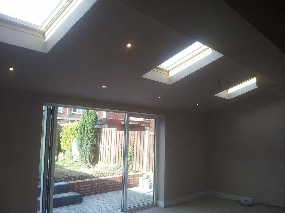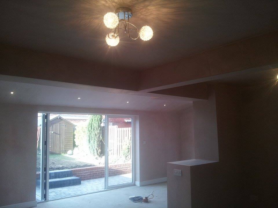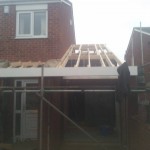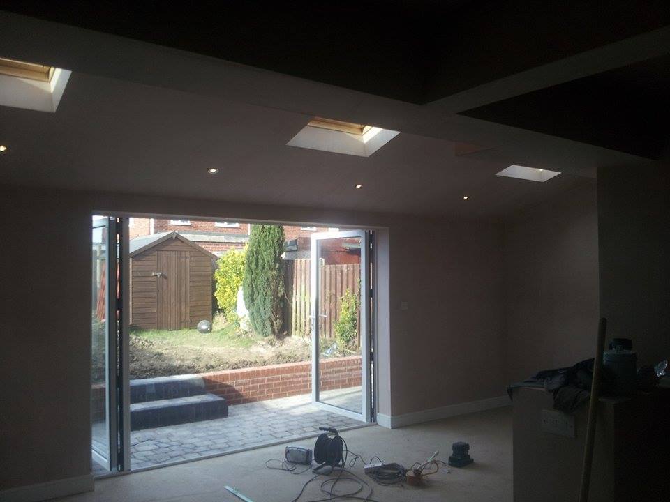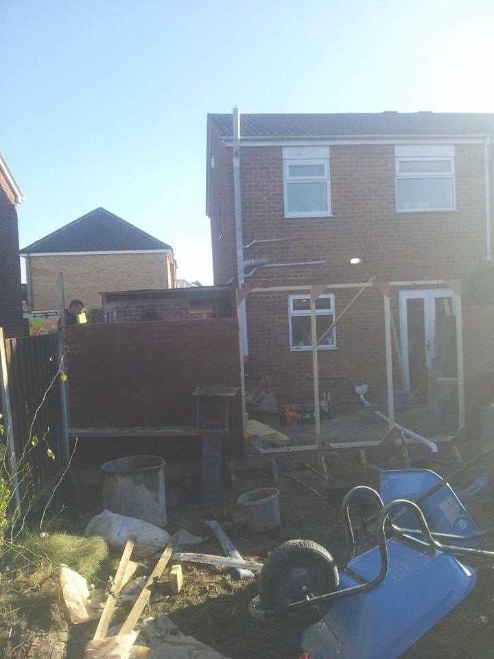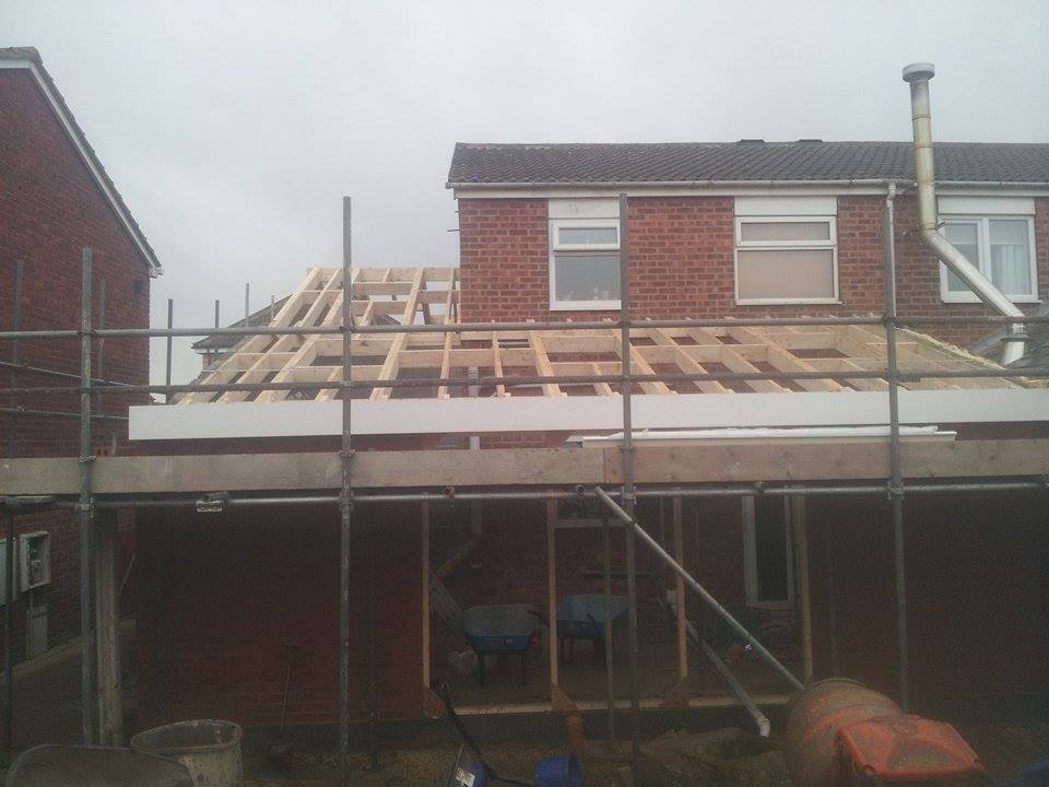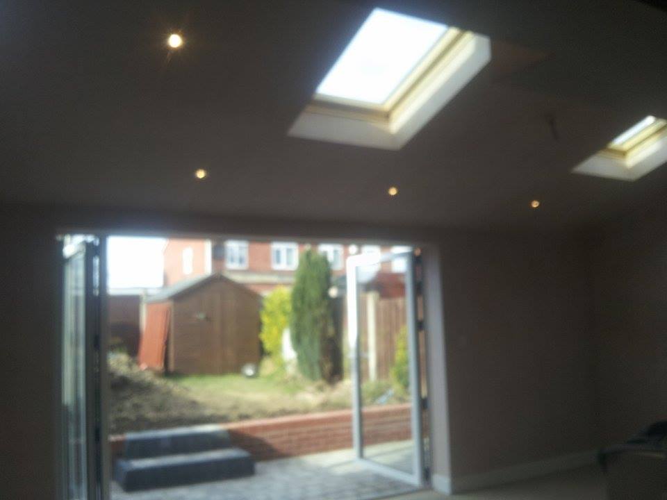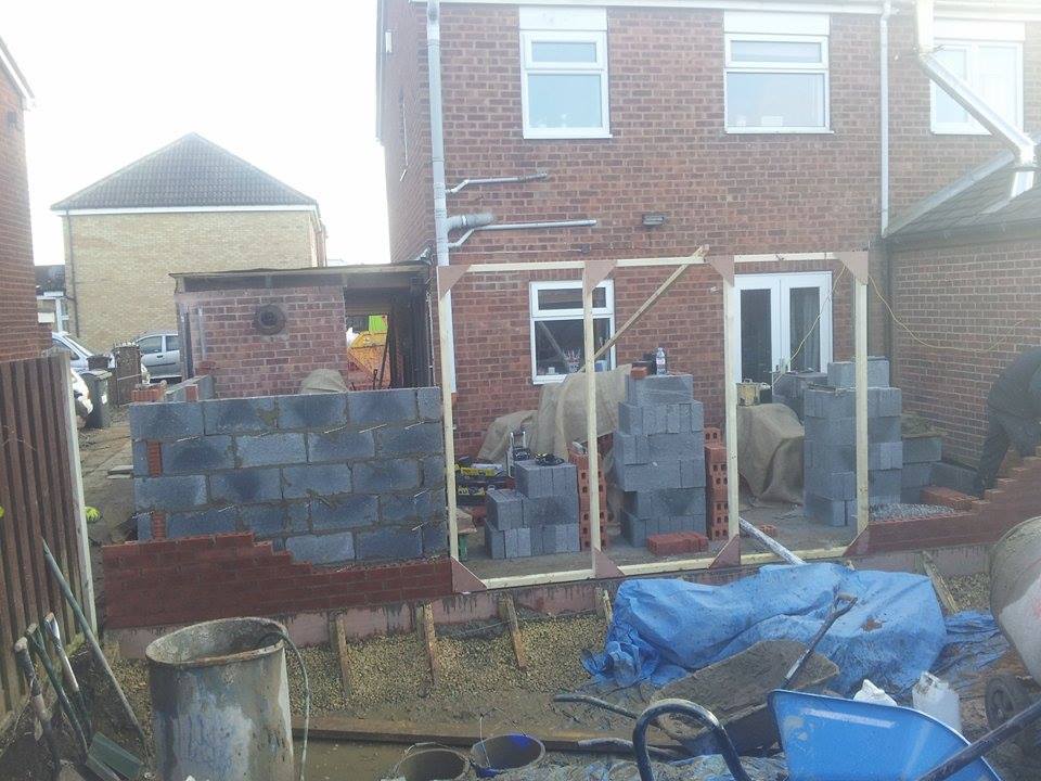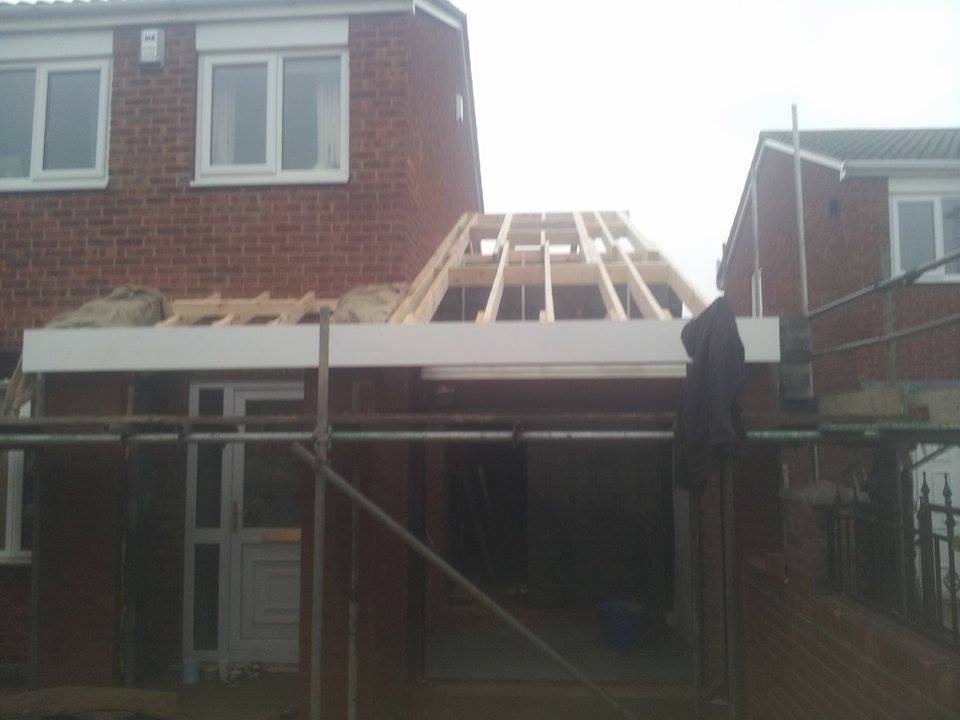 We constructed a rear extension with vaulted ceiling, Bi fold doors, the roof then carried on over existing side garage round onto front elevation where we extended garage to the front and constructed a front porch. Also block paved front area.