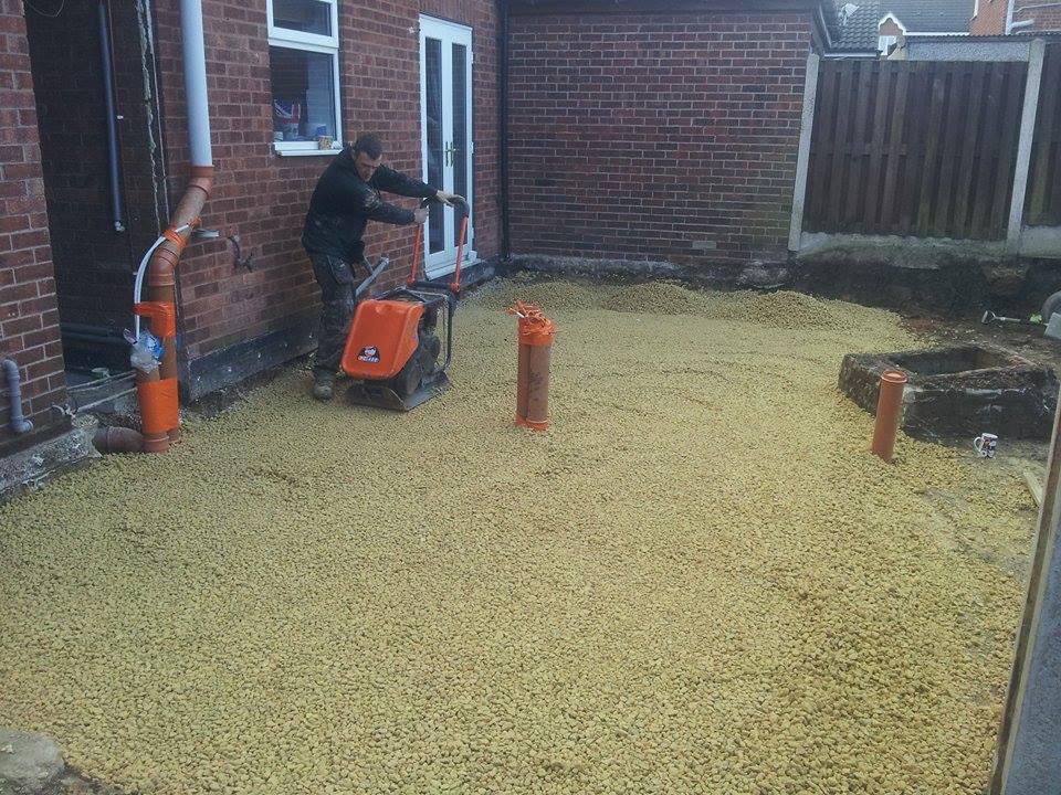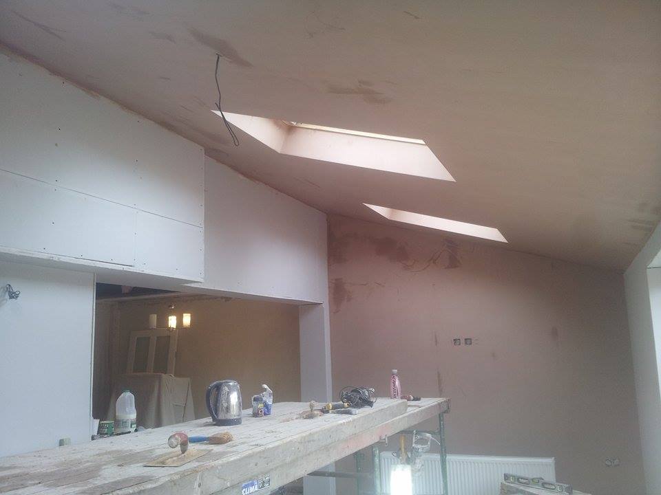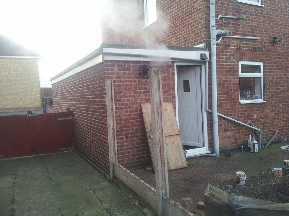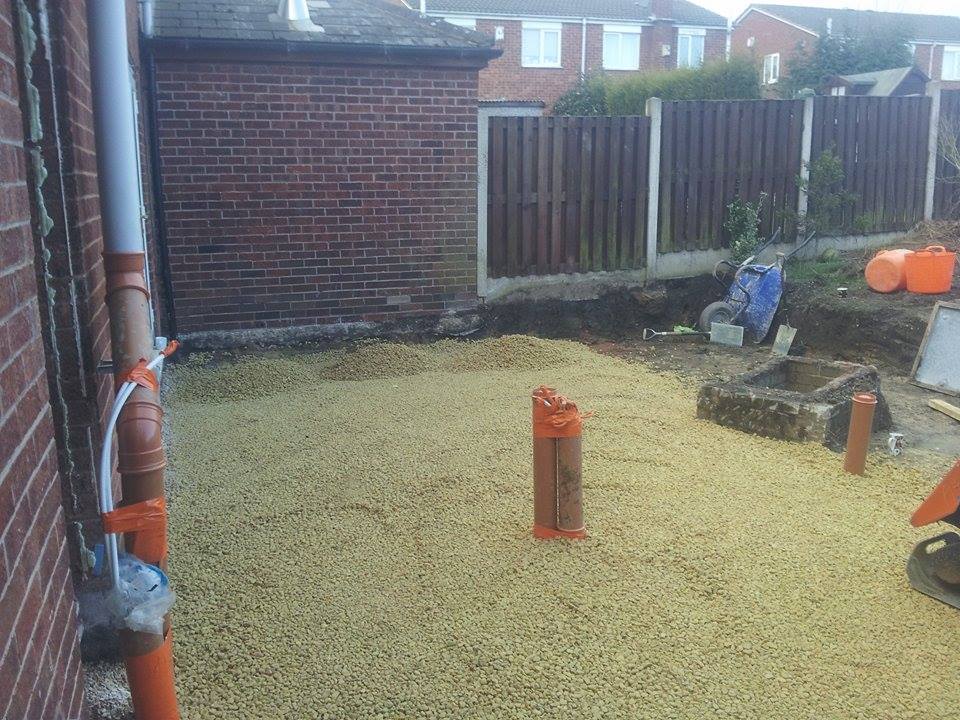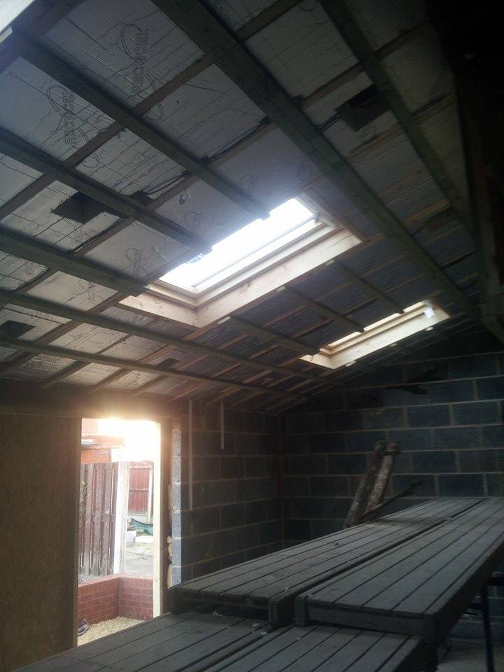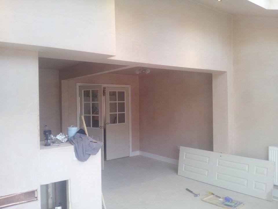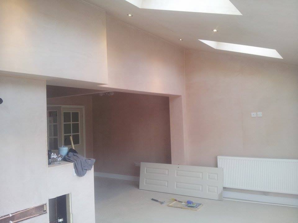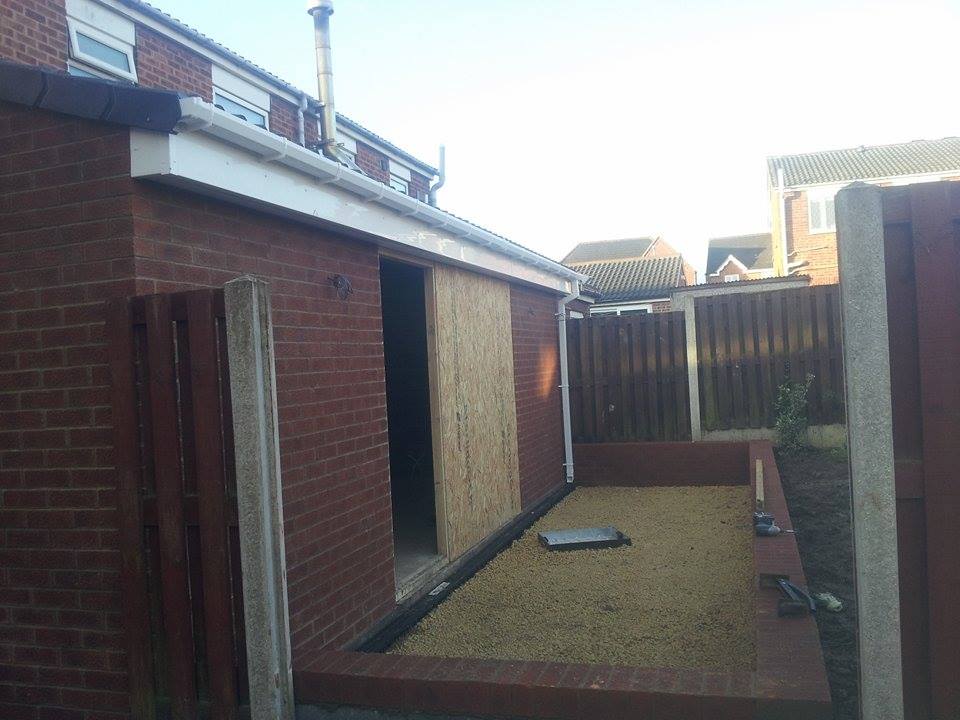 We constructed a rear extension with vaulted ceiling, Bi fold doors, the roof then carried on over existing side garage round onto front elevation where we extended garage to the front and constructed a front porch. Also block paved front area.