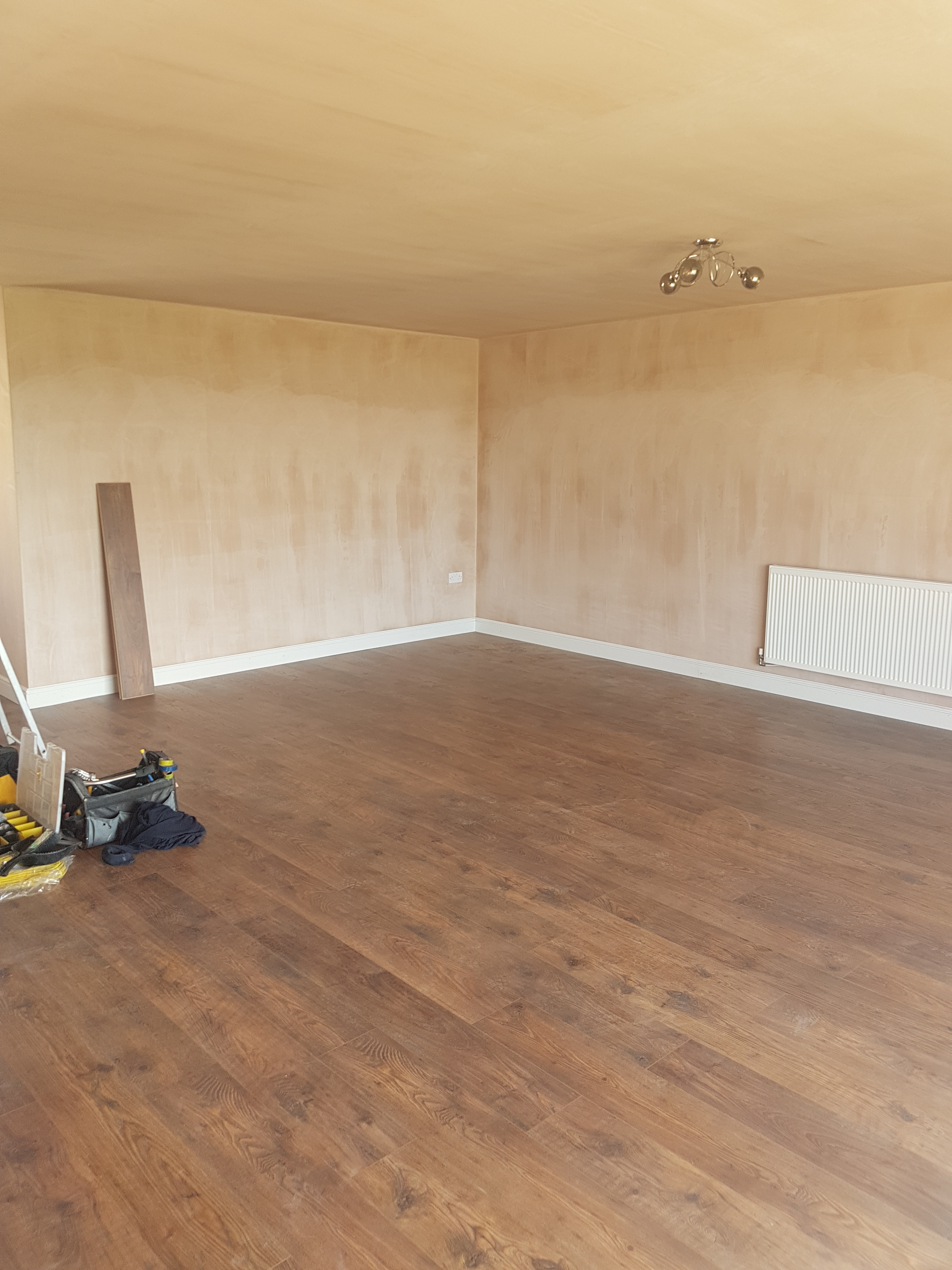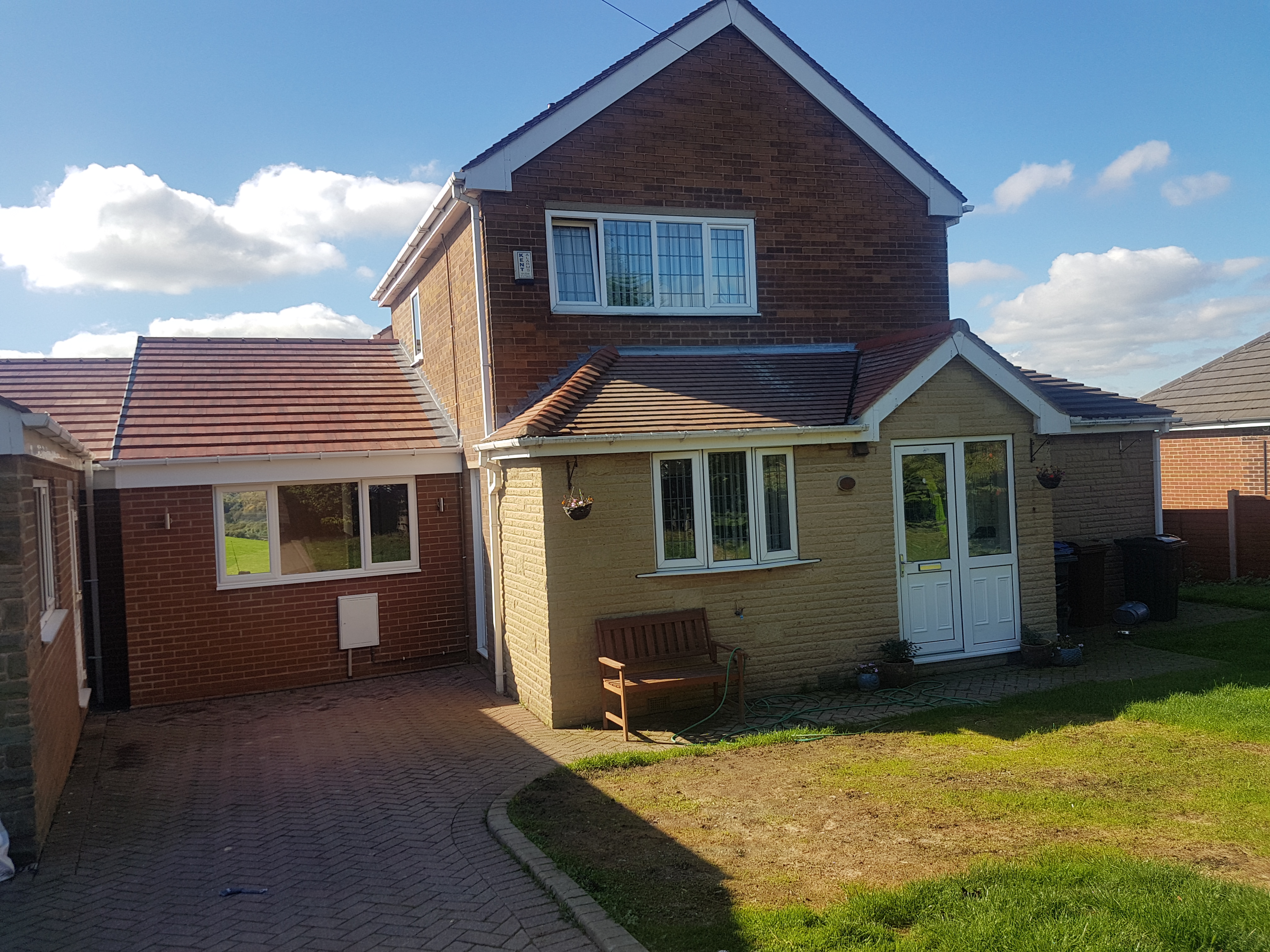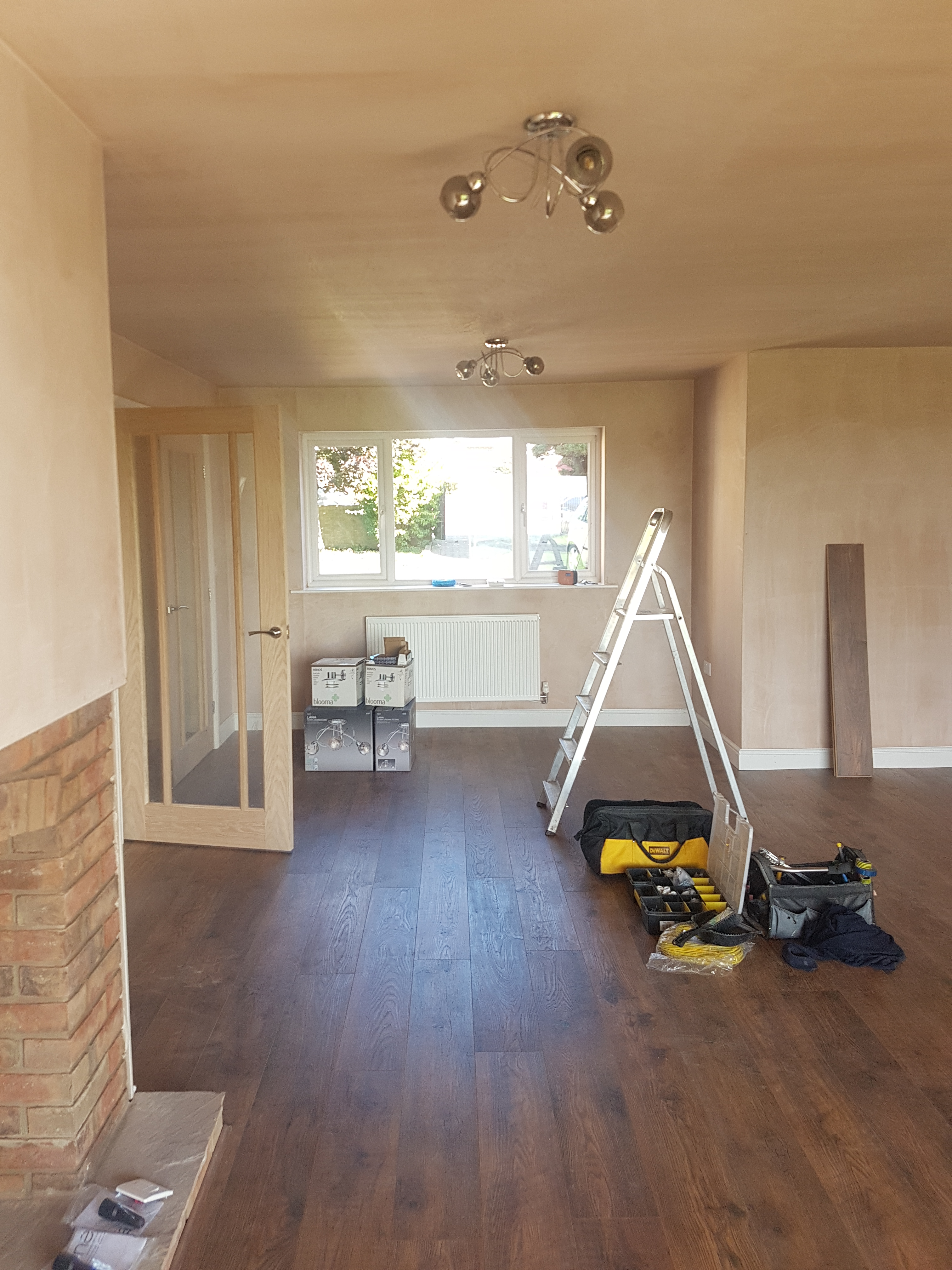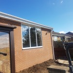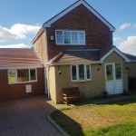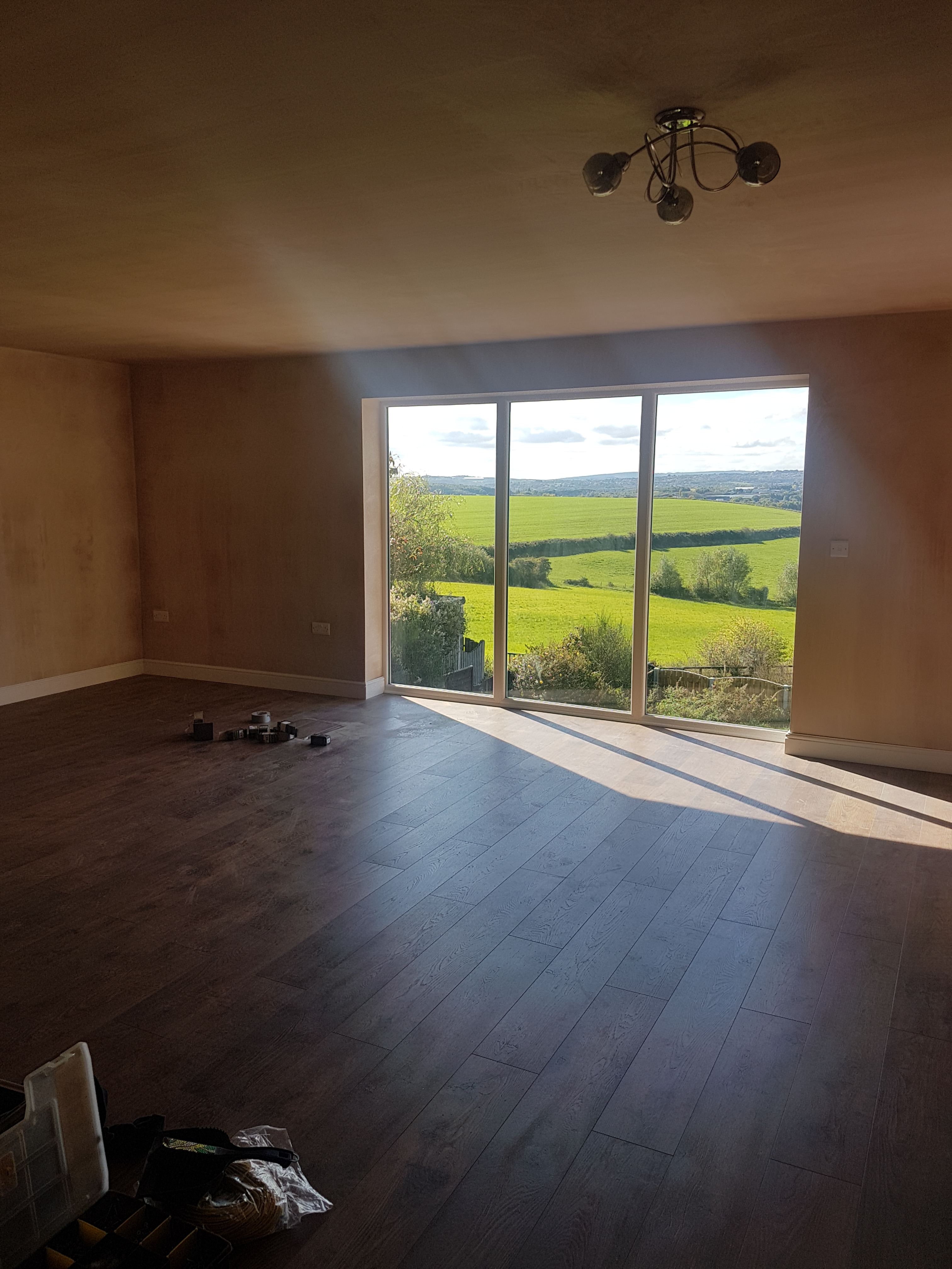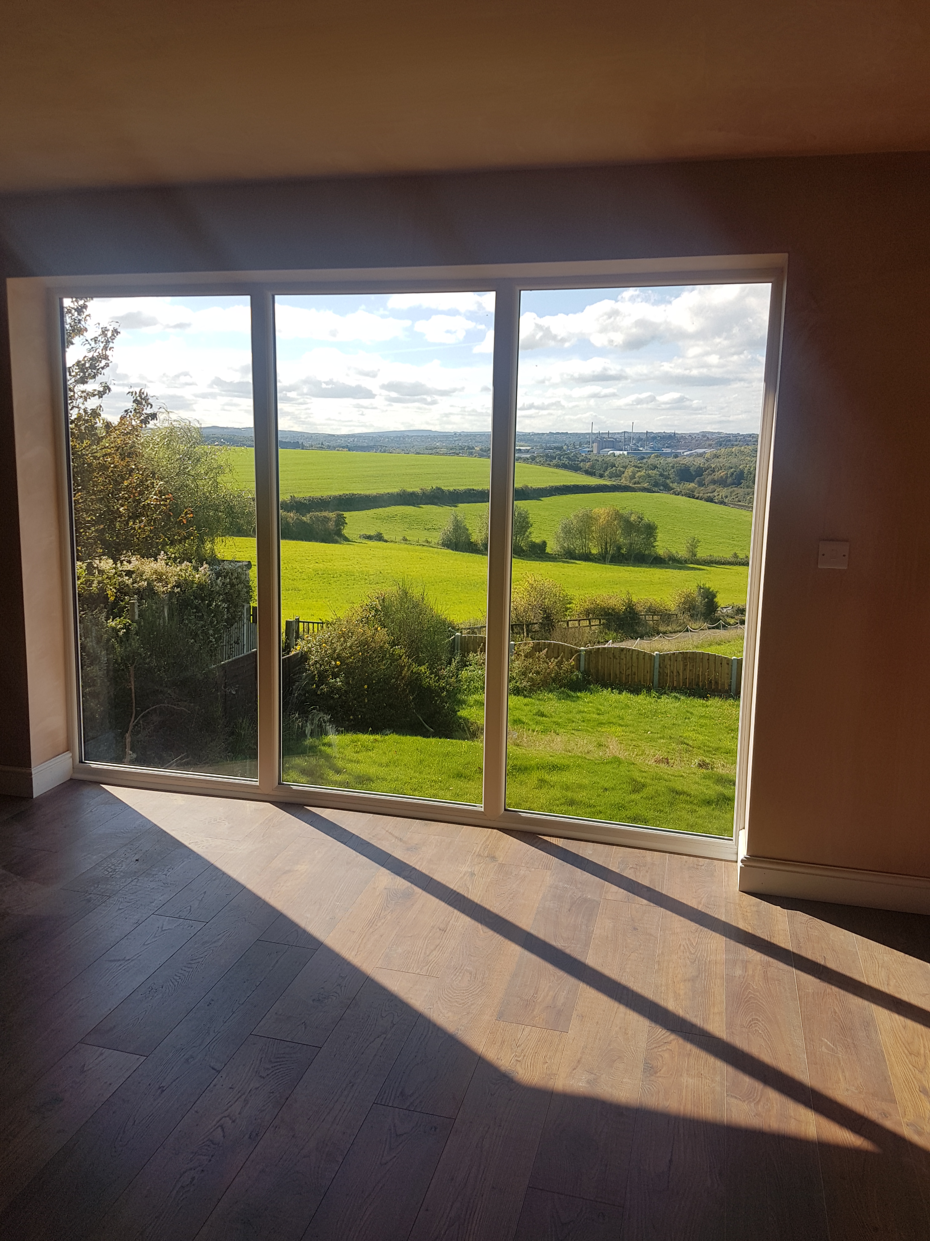 We constructed a ground floor extended living area with log burner and extra large window overlooking stunning scenery