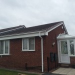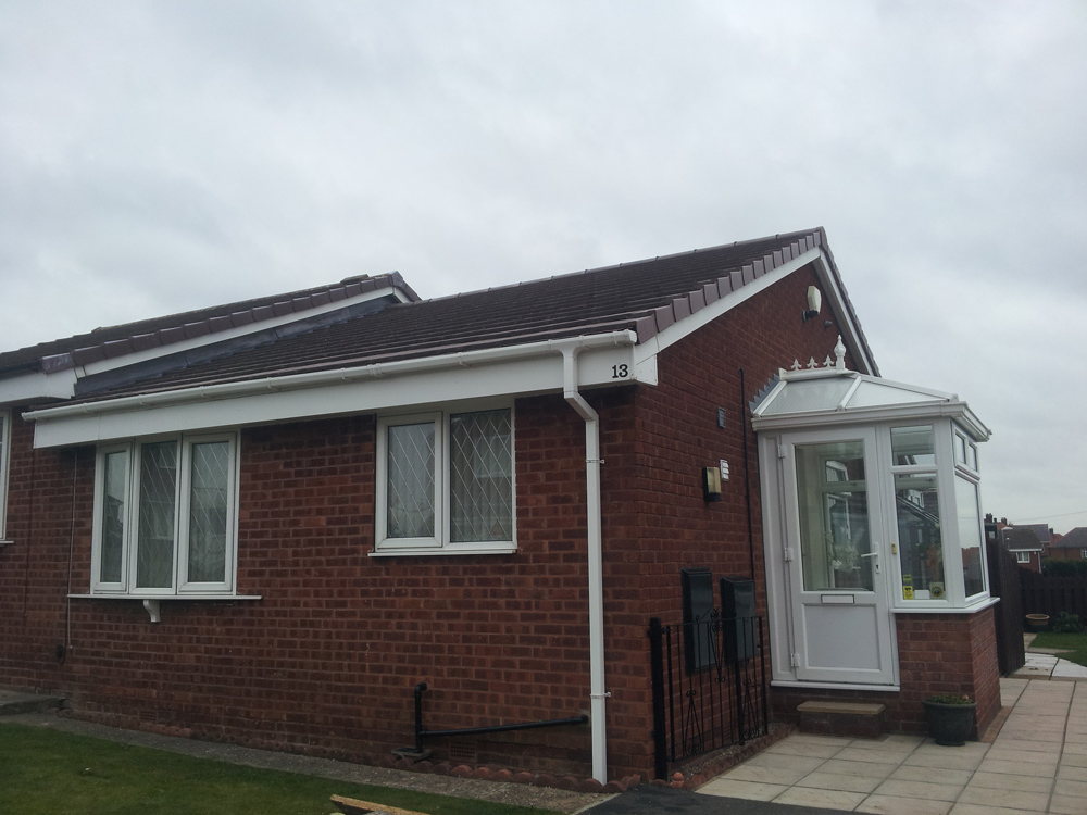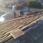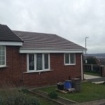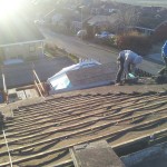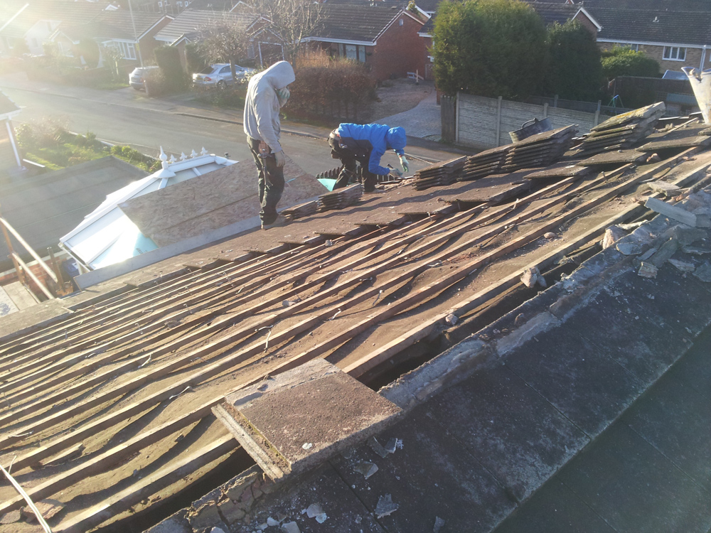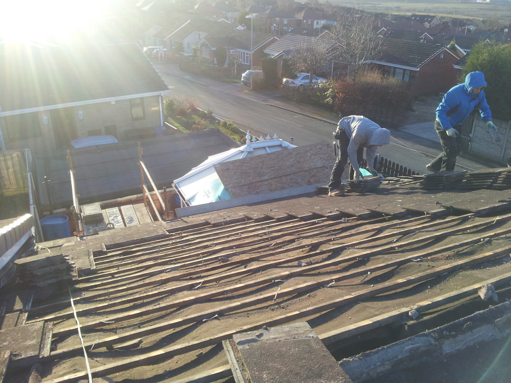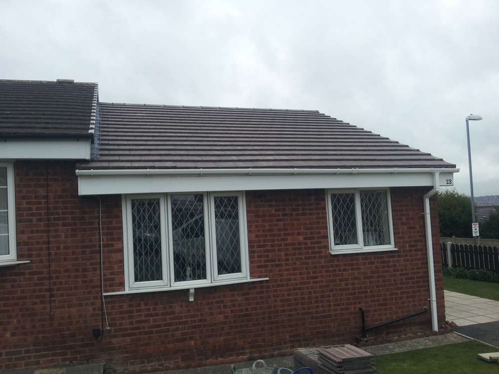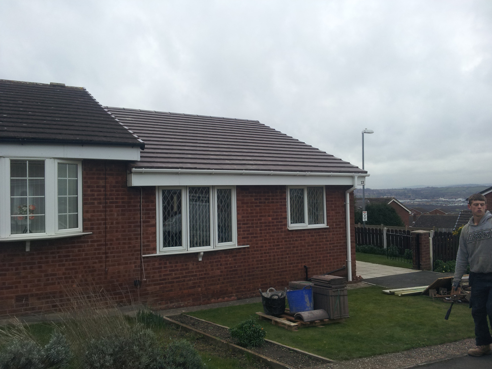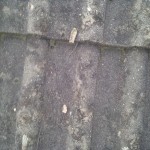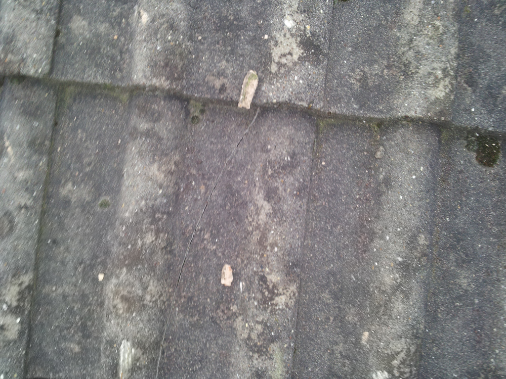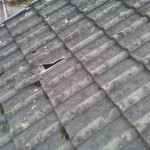 As you can see, the roof tiles are defective. Also the felt below the roof tiles was deteriorating and not offering a secondary barrier. Photo displays completed roof replacement.